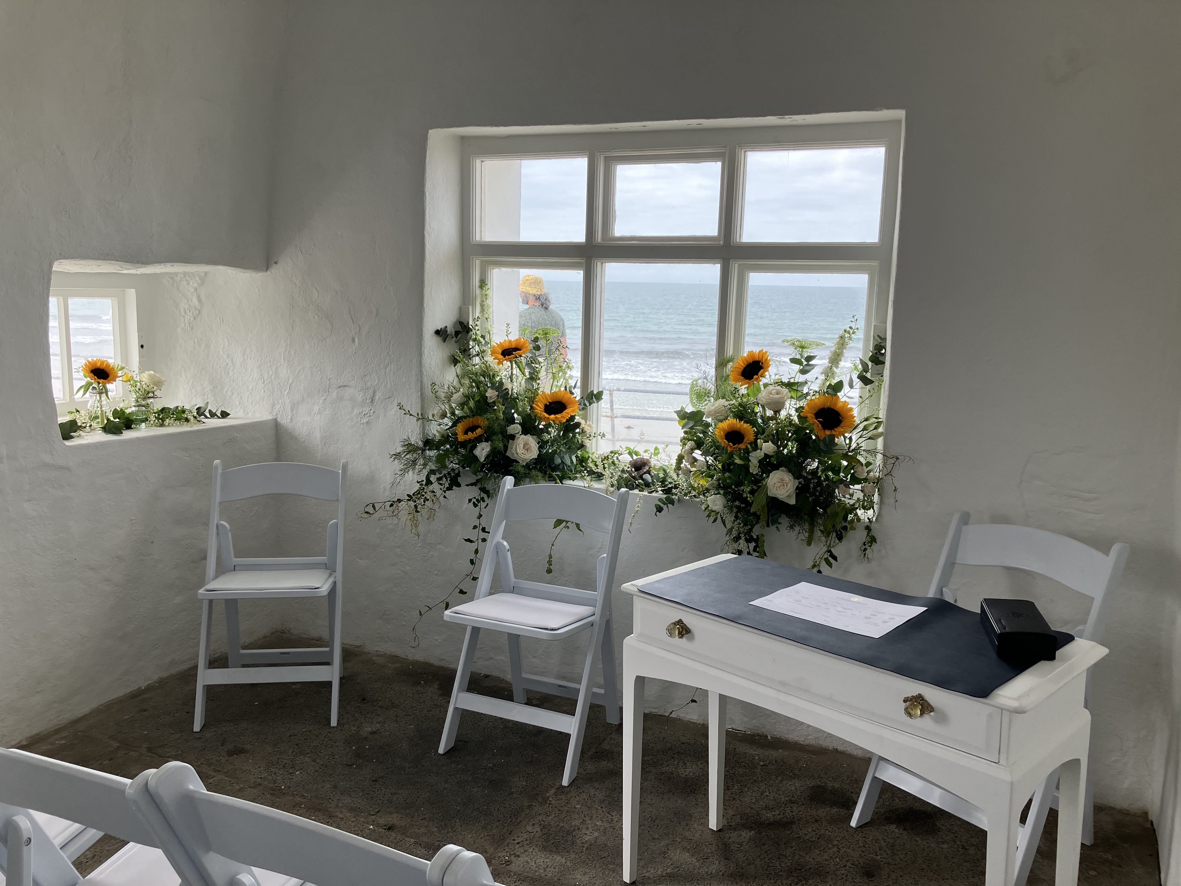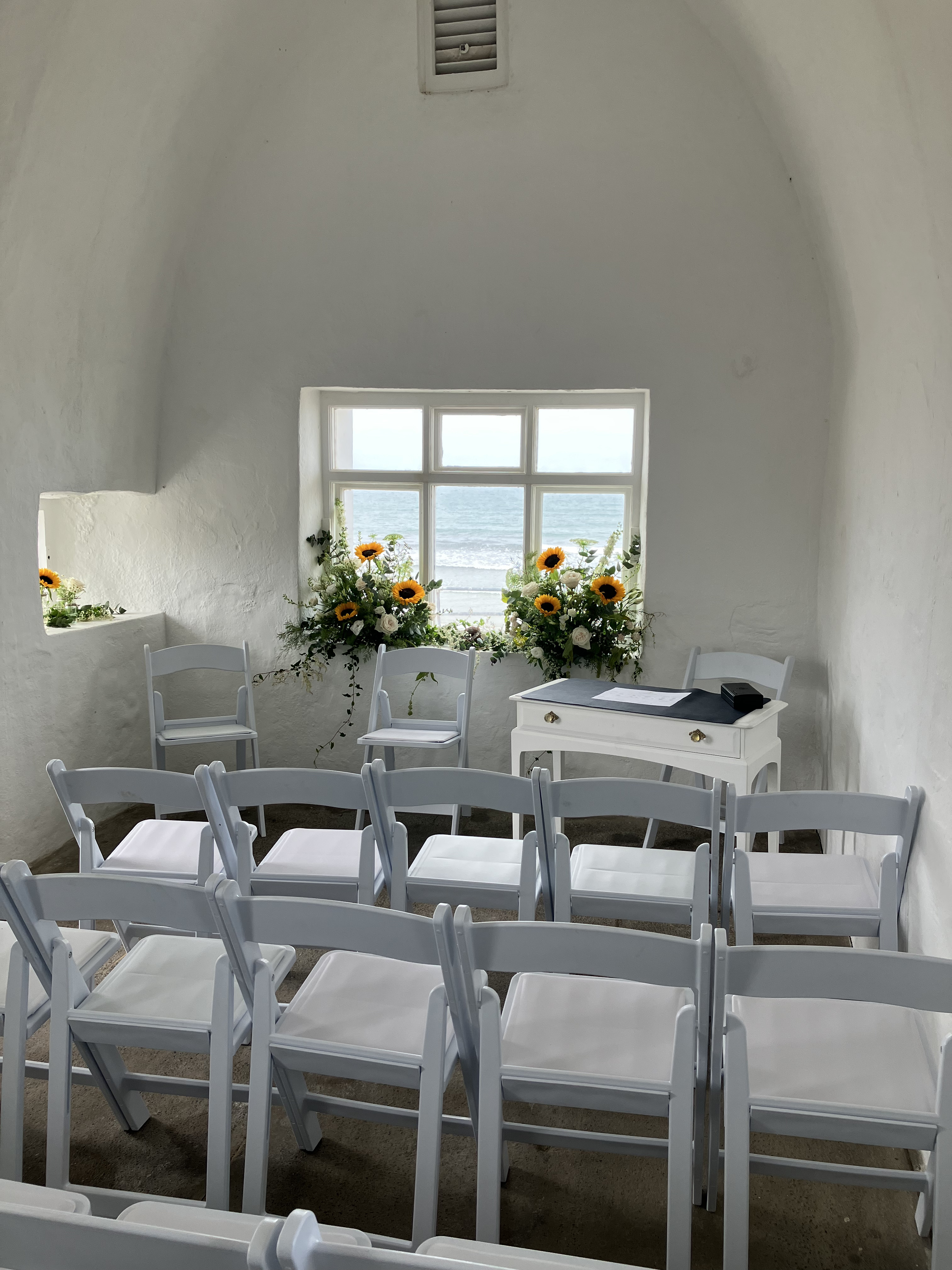 The wedding service takes place within the seaward facing room and this has a capacity of 25 people, so is perfectly suited to small intimate weddings.